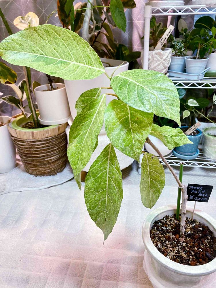 オオバイヌビワ斑入りに似てる気がしたけど、手触りがザラザラしてないからきっと別の子💖