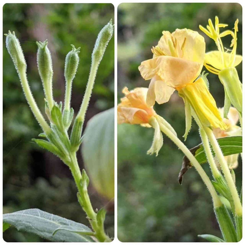 朝の斜面の雌待宵草…きれいな黄色で萎みかけのお花が見れました