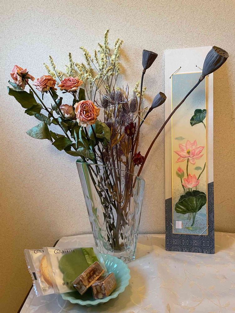 手作りのドライのお花ですが、一緒に飾ってみました✨💕