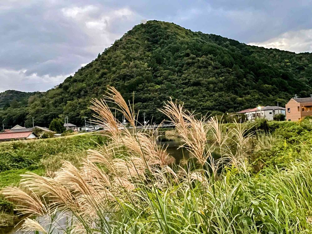 買い物帰りに、問田川沿いを歩き、風に揺れる芒と姫山を撮りました。