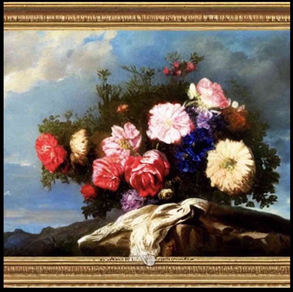 8K, ドラクロワ,花を描く,高品質,写実的,油絵, 風景画,木製額付きで全体的に描く