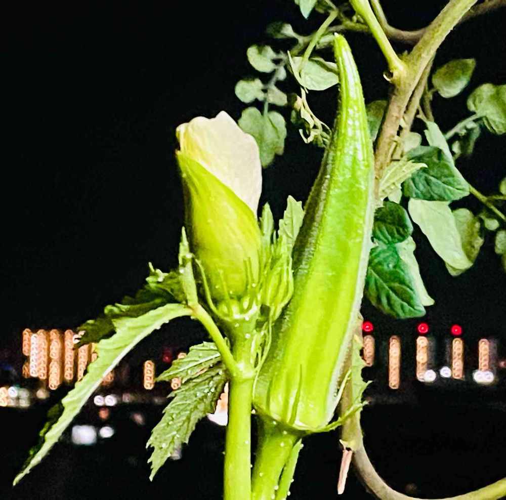 レモン茶さんのバルコニー/ベランダ,オクラ,オクラの花の投稿画像