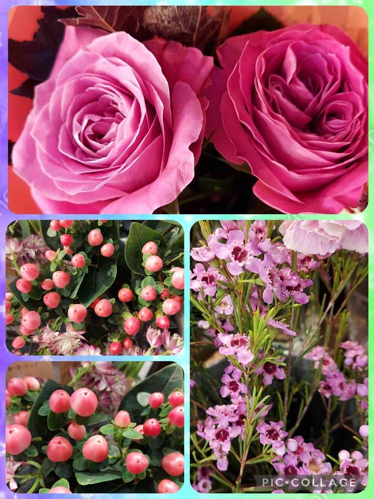 左は「ヒペリカム」右は「ワックスフラワー」かも!
