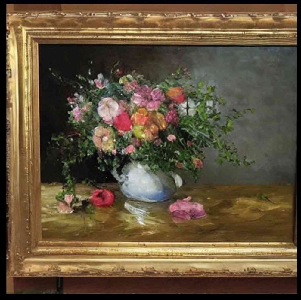 8K,高品質,写実的,油絵, Olga Wisinger-Florian,花の風景画,木製額付きで絵の全体を描く