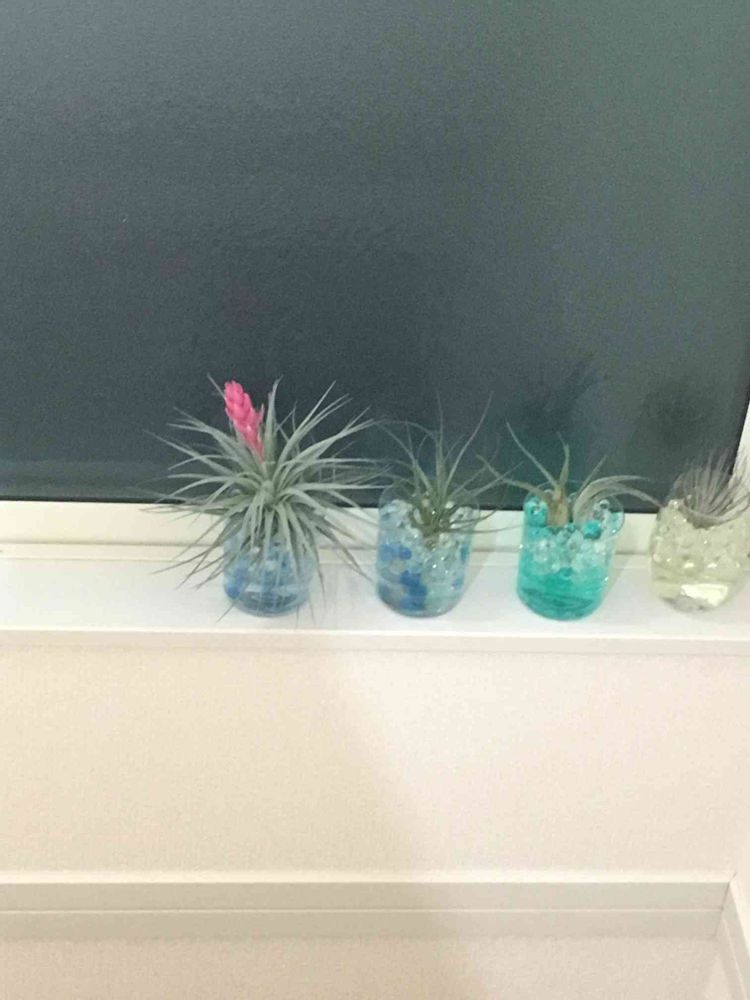北側階段の窓際に置いたエアプランツたち。左端、ばかでかくて花咲そうなの、可愛くて連れて帰ってきた。