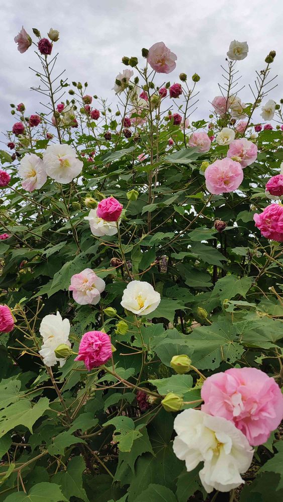 美しいフヨウ花、しかも白 ピンク色の濃淡全体に入り混じり綺麗です🤗 初めて見せて頂きました。ありがとう(◍•ᴗ•◍)✧*。
