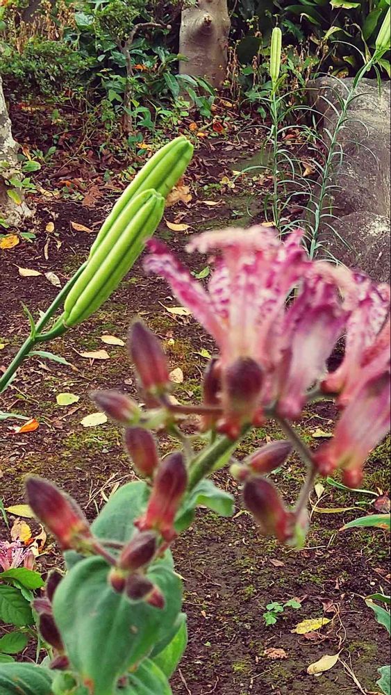 ホトトギス、やはりこちらでも遅れてます ようやく蕾が立ち上がって〜そろそろかな?🤔 何時までも暑かったせいかしら?🤣🎶💕