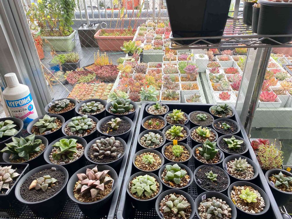 サンルームの棚が既にパンパン、外の多肉の場所が無い🤣🤣