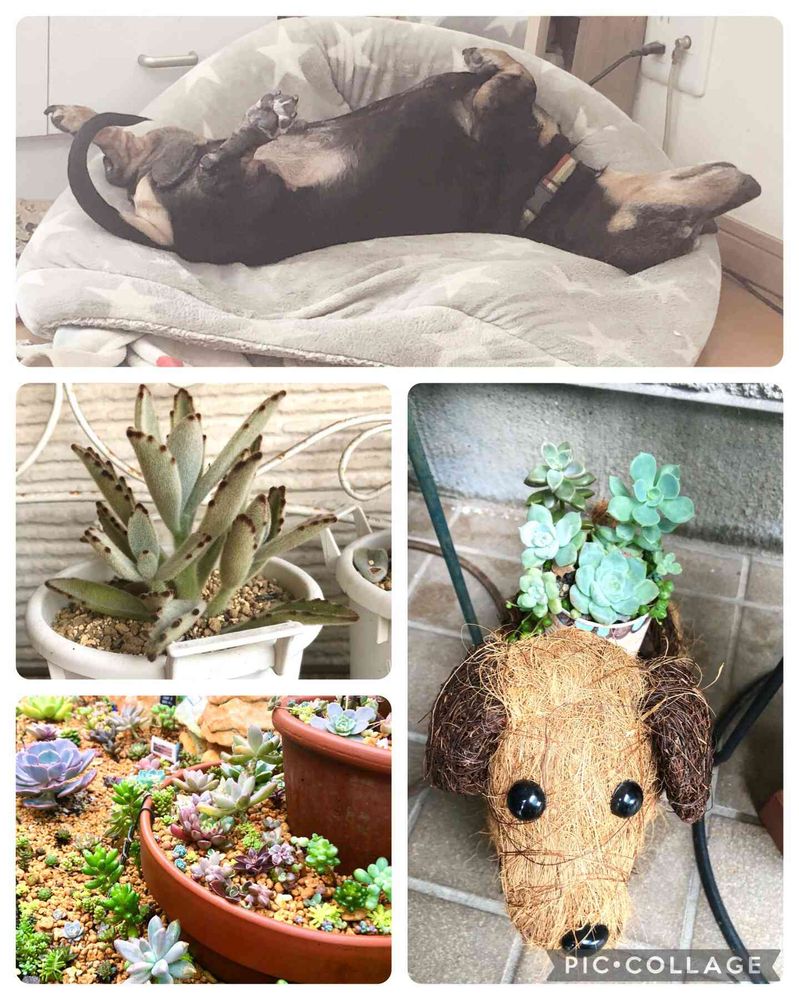 昨日実家に行ったら母の日にあげた多肉の寄植えがワンコの入れ物に入ってました😆