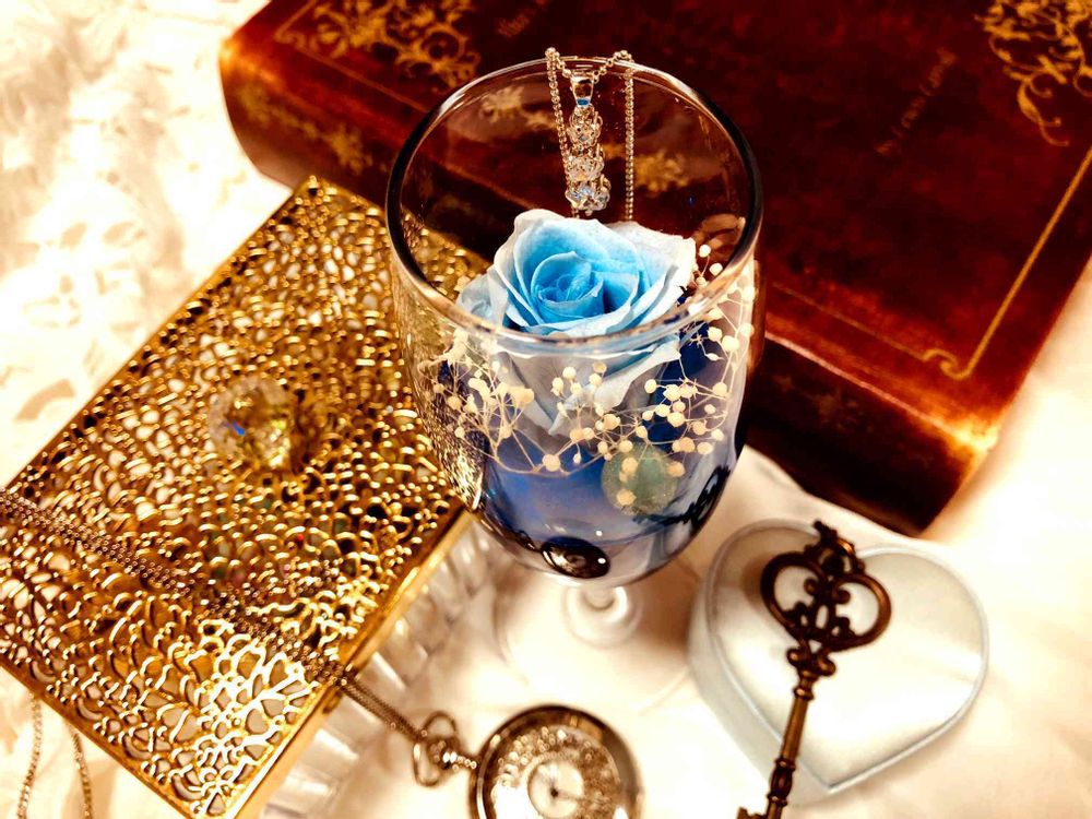 カクテルグラス入り、青薔薇のプリザーブドフラワーです。自室に飾っております。