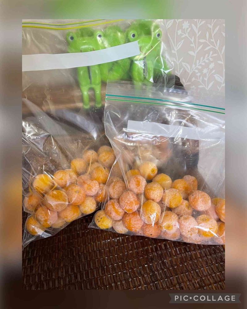 さん✨✨🐸💕💕凄いことなるそうです❣️ジップ付きビニール袋は今んとこ臭わないから、しばらくそのままにしてから袋の中で出してくっさい皮は、袋ごと捨てる作戦で行きます😅