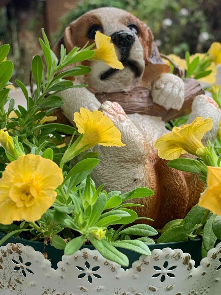 今日はワンワン祭りだそうで🐶切り戻してまた、咲きだしたカリブラコアさんとワンワンです🐶🏷ワンワン祭り、初参加させてくださいワン🐶