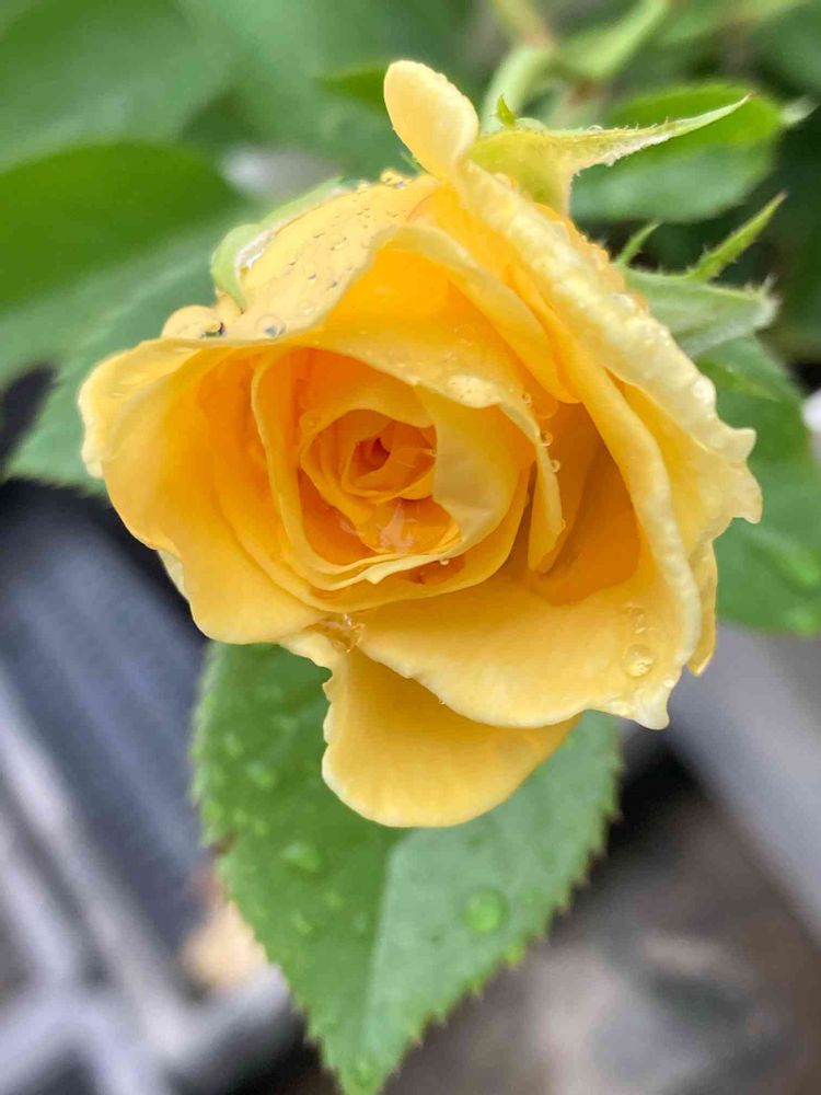 娘の嫁ぎ先のお母さんが育てていた薔薇サンフレア🌹我が家で預かっている間に挿し芽して、初めて花がひとつ咲いてくれました〜🥰