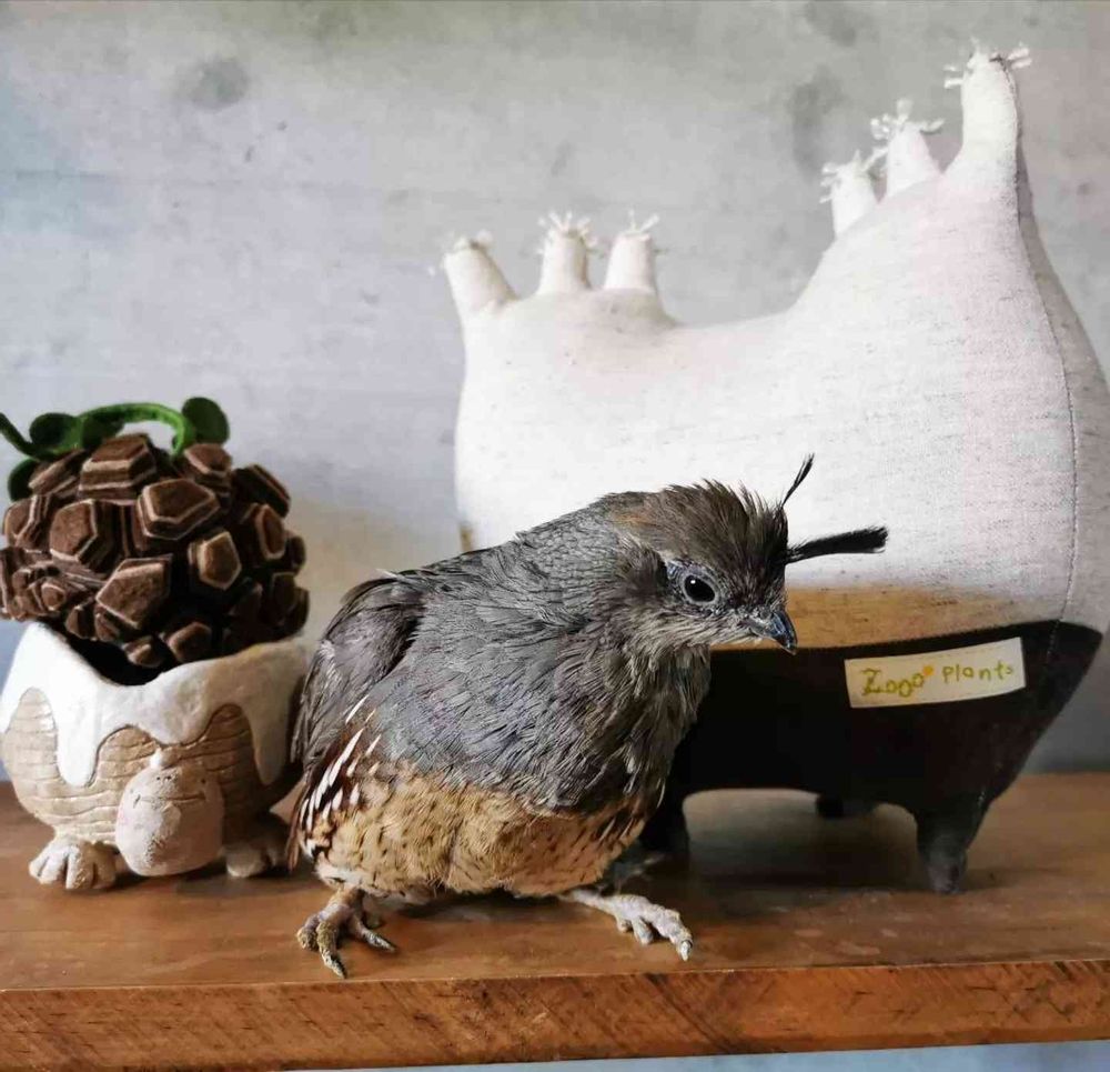 さん 「カンムリウズラ」という種類でオスはホントに美しい模様だけどメスはジミなのよ😂 寿命もメスは5歳位?と言われてるのでかなりおばぁちゃんなんじゃないかな? 「手乗り」ではないしショップの店員に「懐かないですよ」と言われたけど放鳥すると膝に乗ってくるくらいに懐いてます😆
