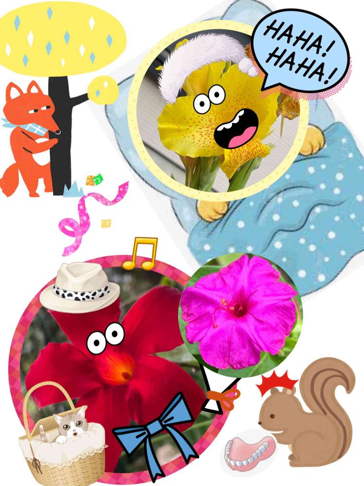 最近の赤ずきんちゃんは頭巾よりハット派❣️タオルを投げながらノリノリ♬マンデビラなあたちはオシロイバナと🐱を連れてカンナお婆さんのお見舞いに♬お婆さんの名はルイジアナ❣️テネシー生まれか❓