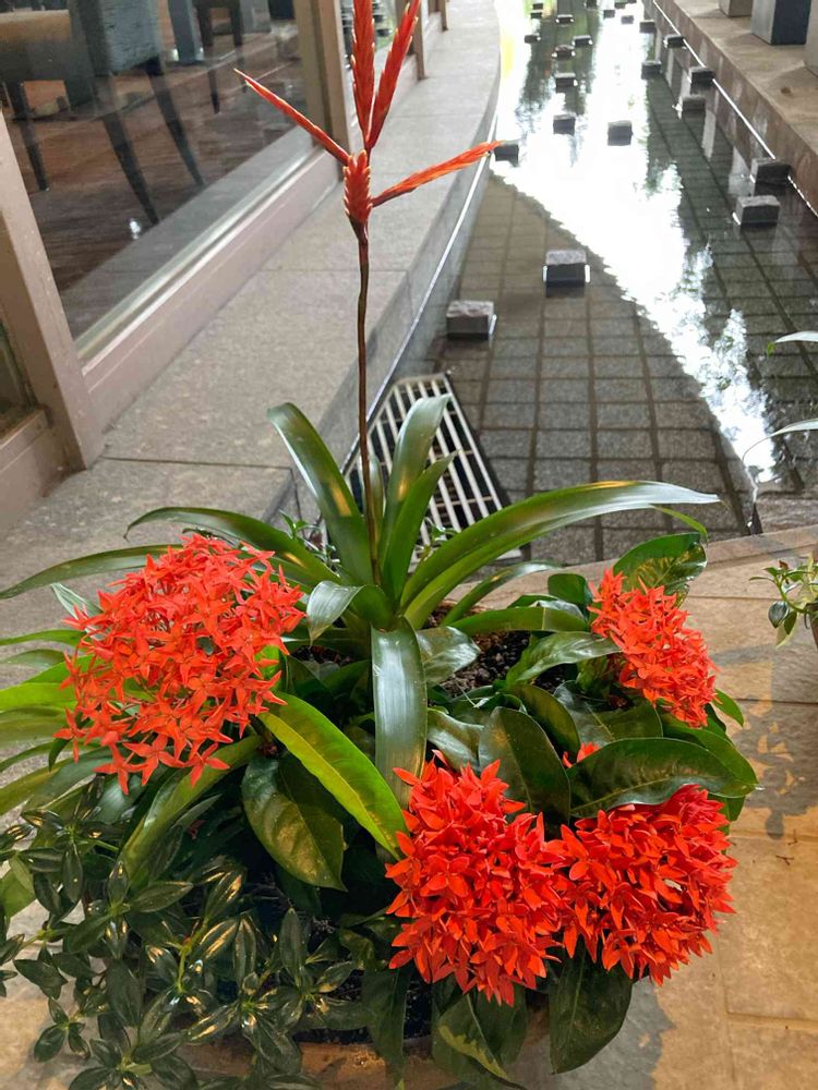 大好きなサンタンカ❤️東京で外に置いてあるのは見たことないです🥰@基町クレド