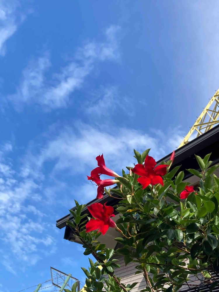 青空に赤いお花が