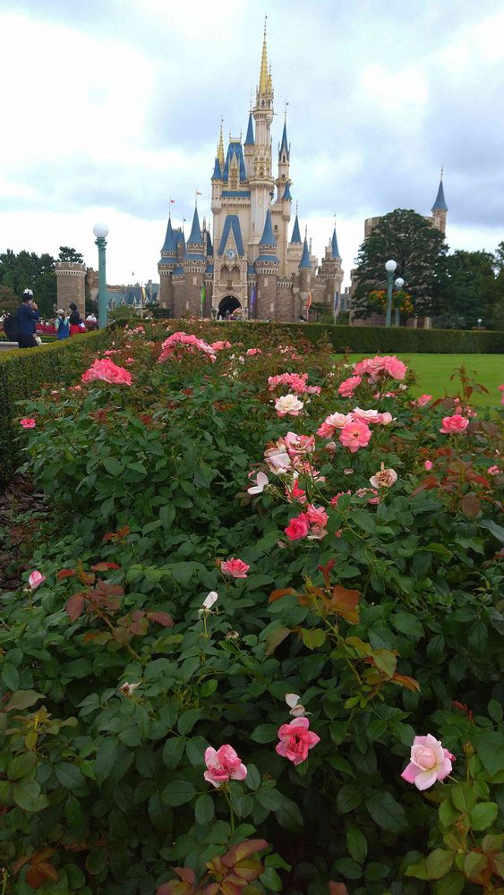 ピンク色の薔薇、シンデレラ城によく映えて素敵だなぁと思いました💝