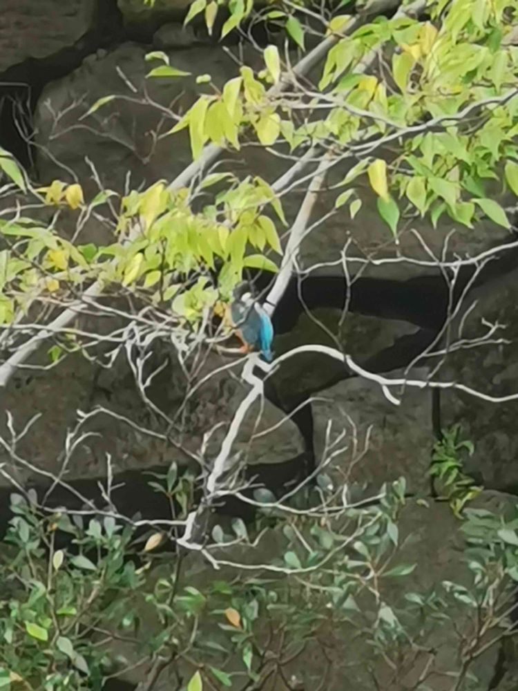 心字池の所のあずまやに望遠の付いた大きなカメラ📷📸を構えているグループがいたので、聞いたら、「カワセミ待ち」という事だったので、一緒になって、スマホで準備していました。