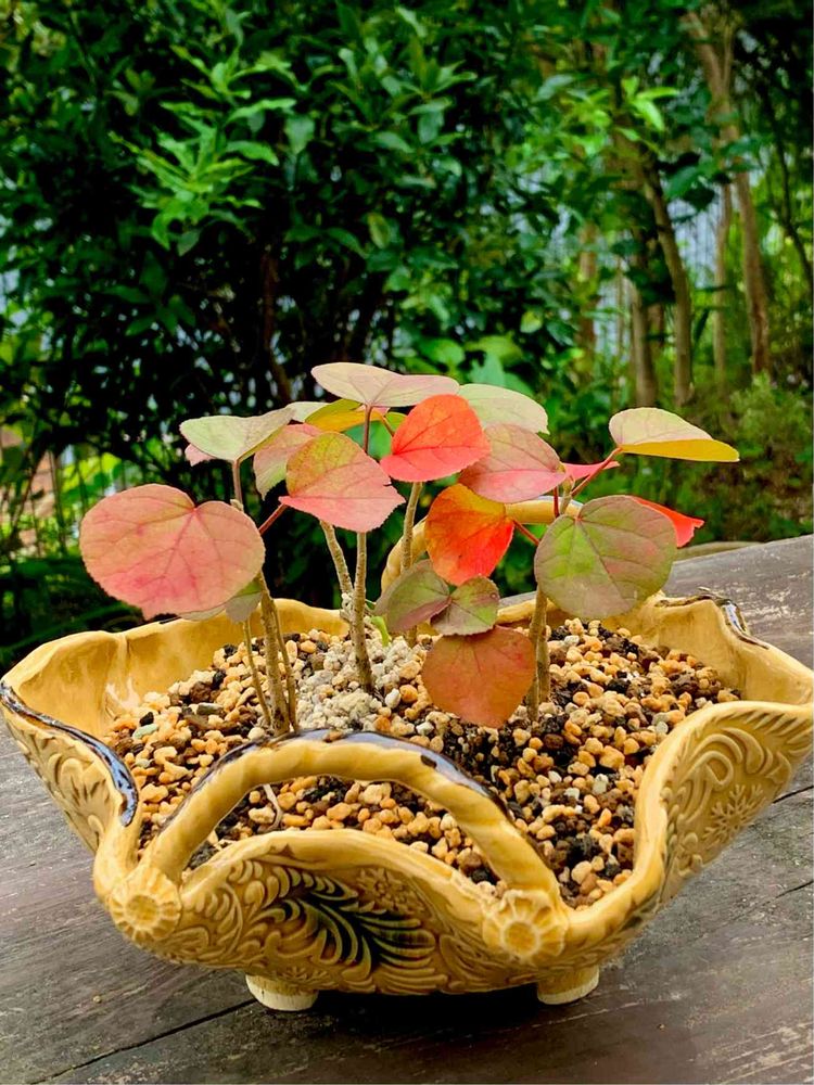 夏の浜辺に爽やかなレモンイエローの花が咲き、秋にはハート型の可愛い葉の紅葉も楽しめる。花言葉は、『夏の思い出』
