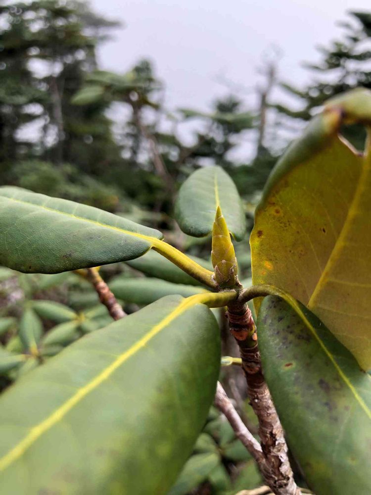 この細い芽はハクサンシャクナゲの葉芽で蕾ではありません。蕾はぷっくりと膨れています。