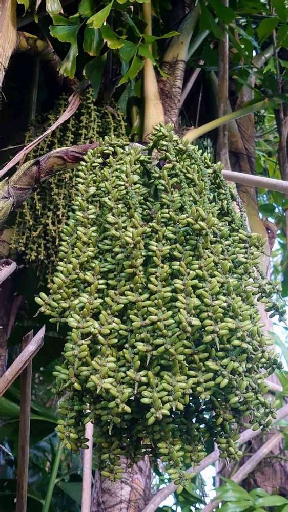 クジャクヤシってこんなに実がなるんだねー!昔クジャクヤシを育ててだけど鉢で育ててたので、実がなる雰囲気は全然なくー!こちらでもクジャクヤシの街路樹は見かけないよー🌴🌴葉っぱの形かクジャクに似ているから、クジャクヤシと何処で見た気がする💚💚💚