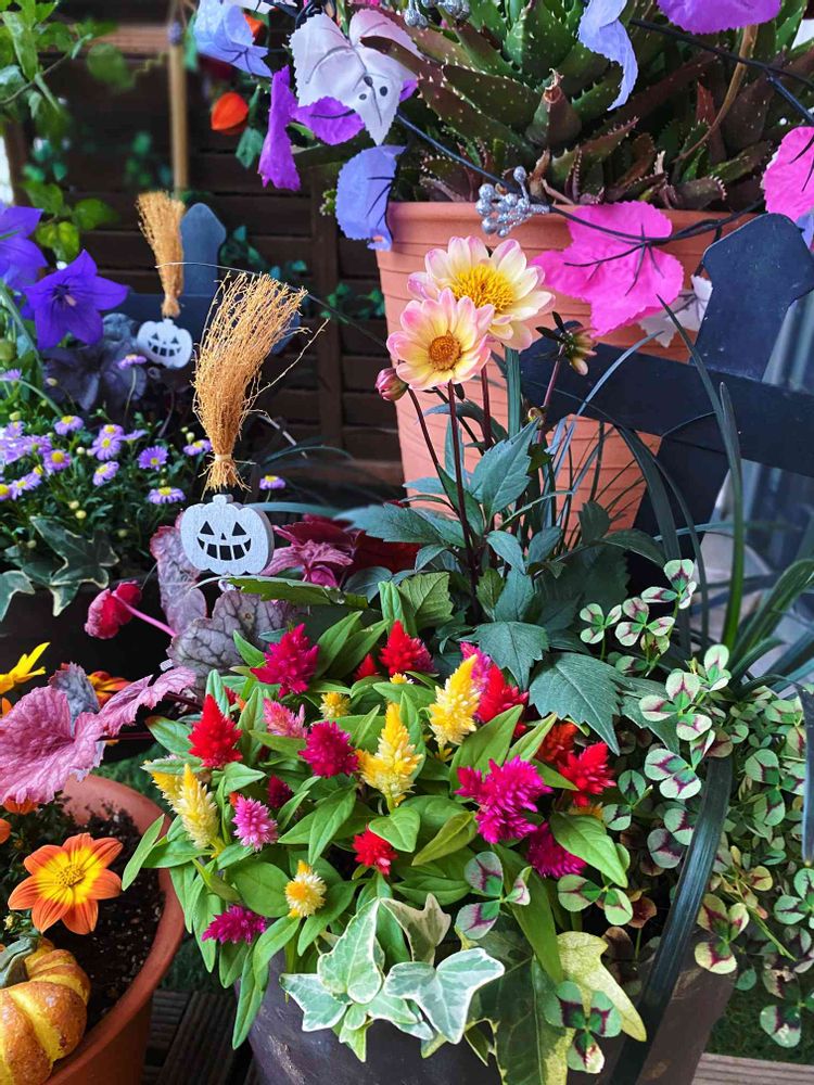 秋の寄せ植えもいいもんだなって😁