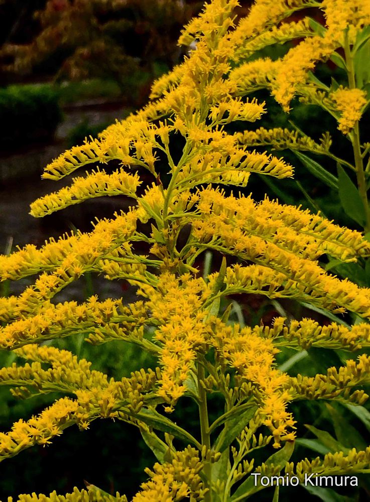 散歩道(京都丹波亀岡 南郷公園)のセイタカアワダチソウが、小さな黄色い花を咲かせていました。