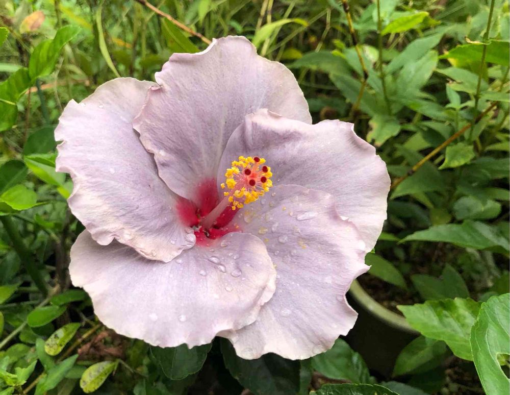 不思議な色のハイビスカス ケイトです🧶。そろそろ開花も終盤です。