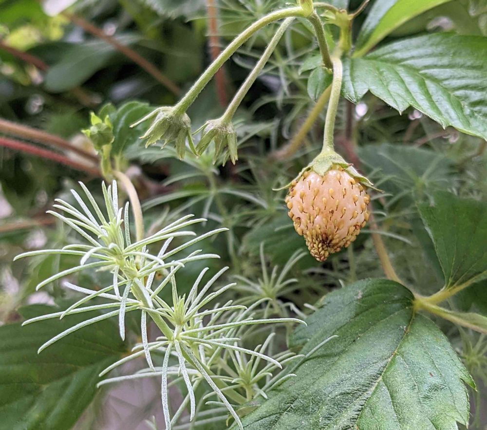白いワイルドストロベリーちゃん。寄せ植えに白い実がポロンポロンしてたら、すっごく可愛いでしょうね(੭ˊᵕˋᑦ)