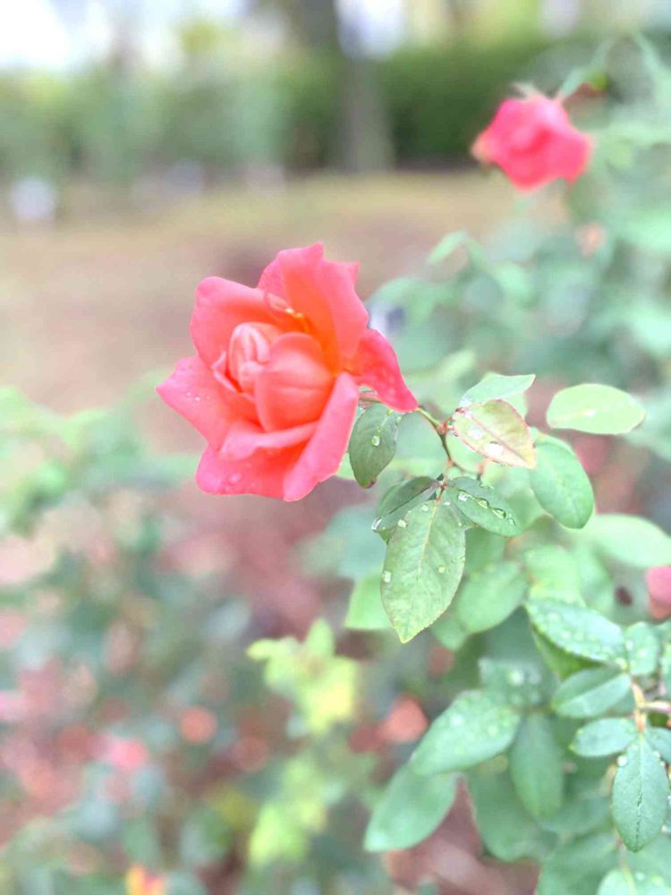 休日の朝、雨上がりに近くの公園で見つけたバラ🌹雨に濡れても凛とした姿が綺麗ですね✨