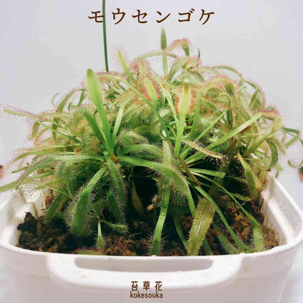 丈夫な食虫植物で、かなり良い仕事をしてくれるコバエ捕虫の達人!?です。一家に一鉢!オススメいたします。育て方も簡単で100円ショップのザル付き豆苗プランターに乾燥水苔を敷き詰め、常時2㎝ほどの腰水管理。ザル付きなので月に2〜3回の水交換がとても楽に行えます。
