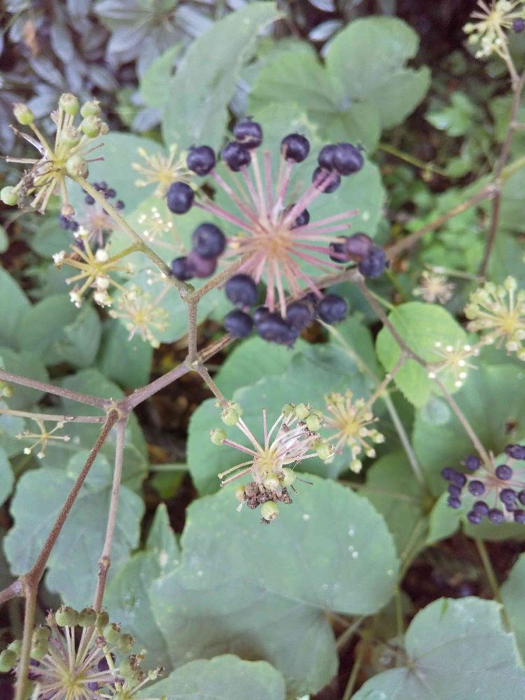 黒紫色に熟した「ウド」(独活)の果実。 チョッと怪しい色!