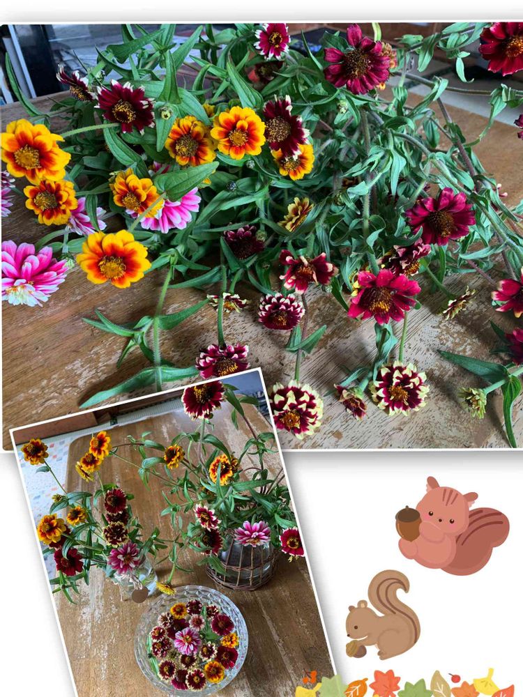 昨日はお庭のジニアを沢山使い、花生けをして飾りました🌸🌼🍁🍂