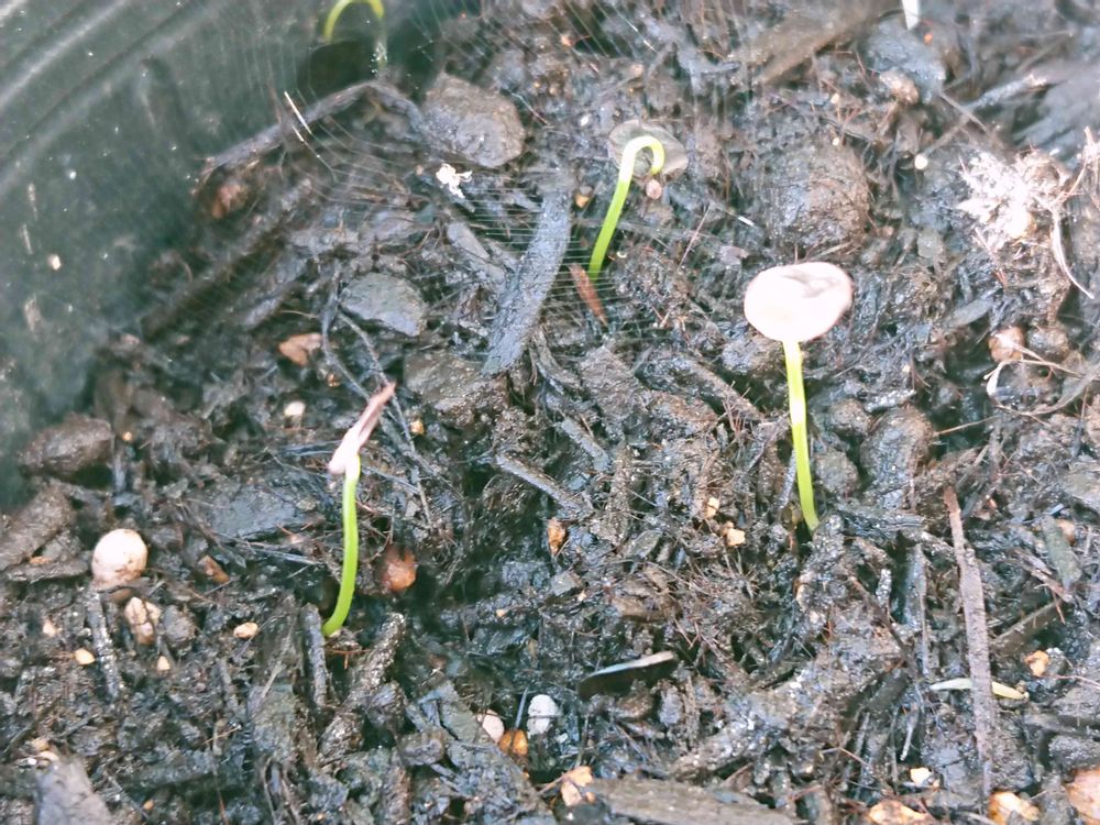 種を被ったまま緑色になってきました🌱