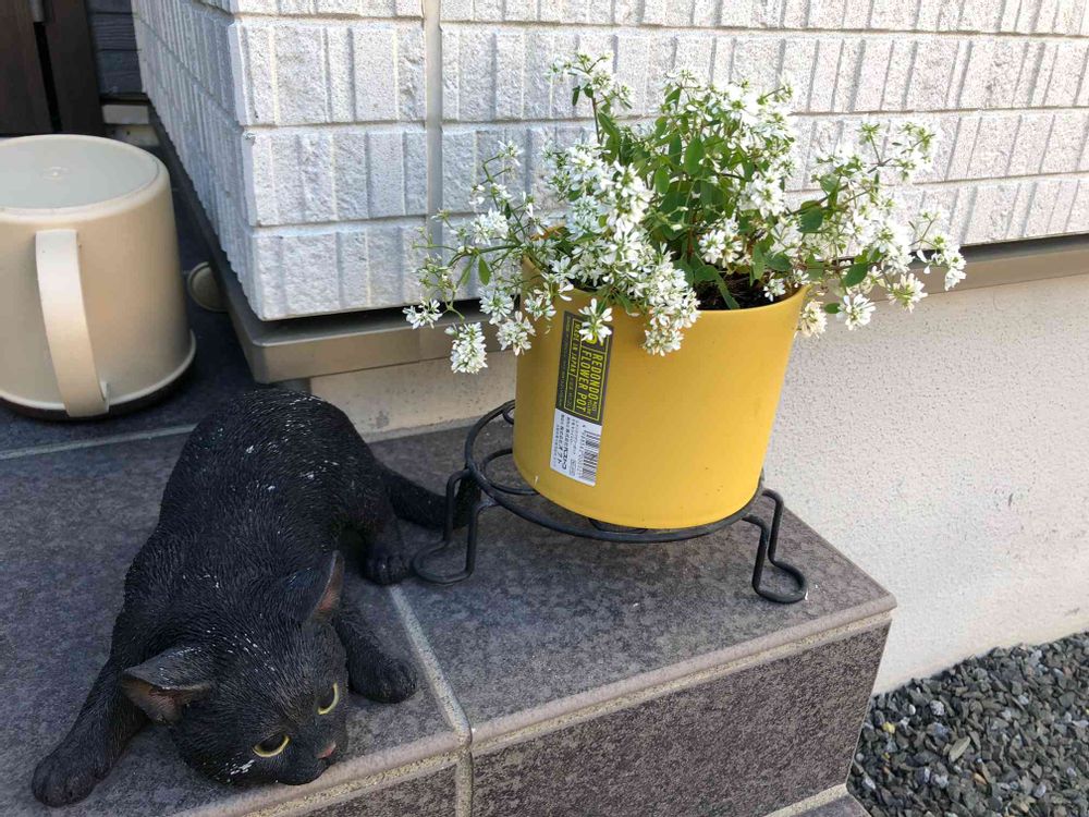 ユーフォルビアダイヤモンドスノーさんと猫の置物🐈⬛