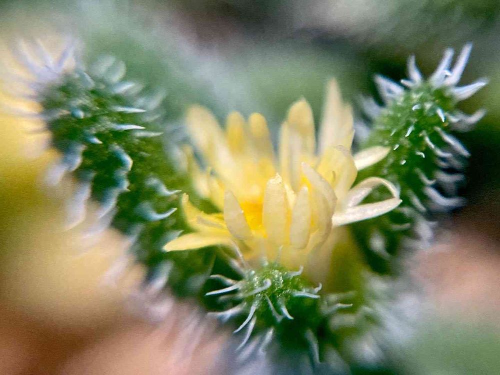 多肉寄せ植えの中に小さな黄花咲いてます🤗
