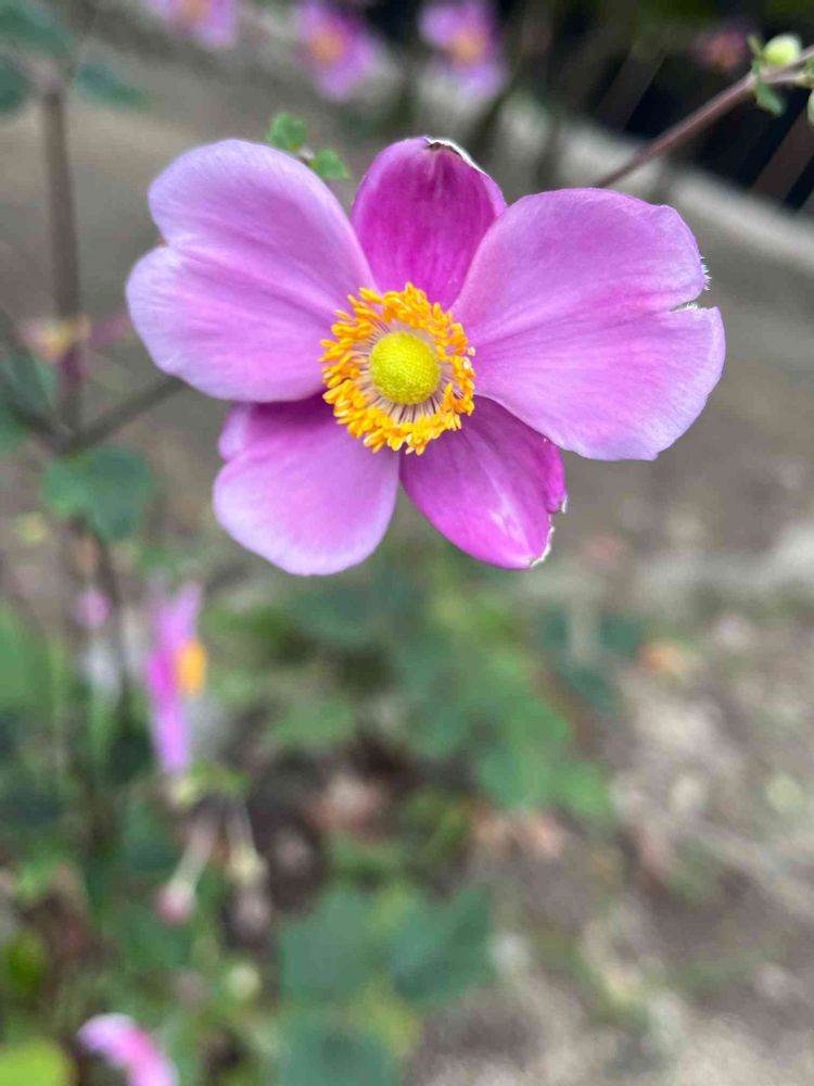 こちらにはないですが、日本の実家の庭で咲いていました。白い方ですけどね。秋明菊は花びらの不均一が小さい子が描く絵のようでかわいいなあと思います。💕 ピンクがまたキュート。💓