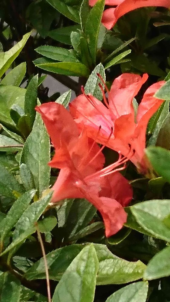 実家の庭 池の回りにあるツツジ❔秋🍁🍂なんですが😅