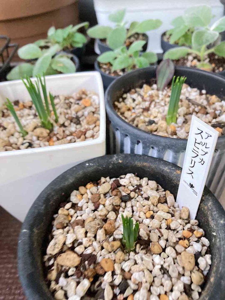 アルブカ スピラリス そういえば芽が出てない(;´д`)そろそろかなぁー?と、少し水をあげたら 3鉢一気に目ざめましたヽ(*´∀`)ノオハヨ-