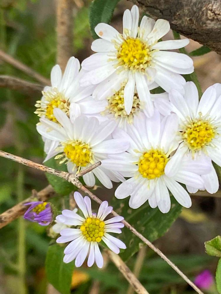 薄紫のヨメナが多く咲く中 白く咲くお花を見つけました。