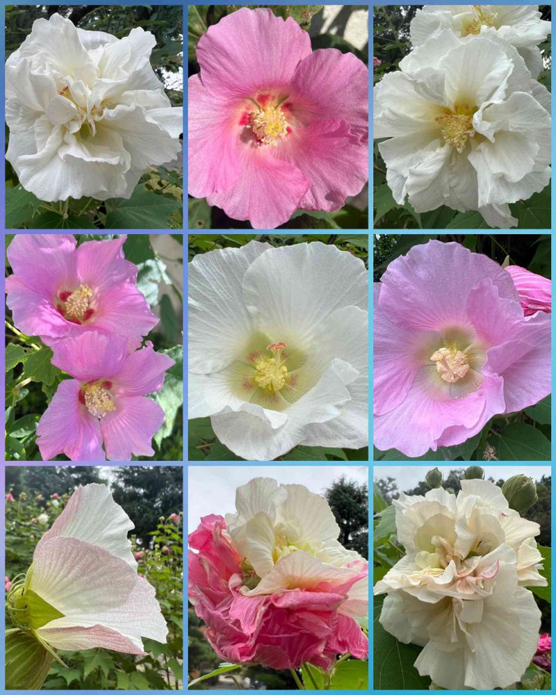 特に八重咲きで花びらがピンクと白に色変わりしている(くす玉先き) "七面芙蓉"は 酔芙蓉の中の女王様👸ですねー💘💕