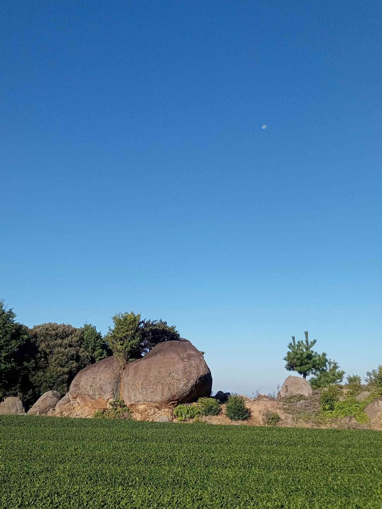 今朝も快晴☀🙌🙌🙌天然の盆栽のある畑に来てます👍空高くに見えるかな??お月様🌕