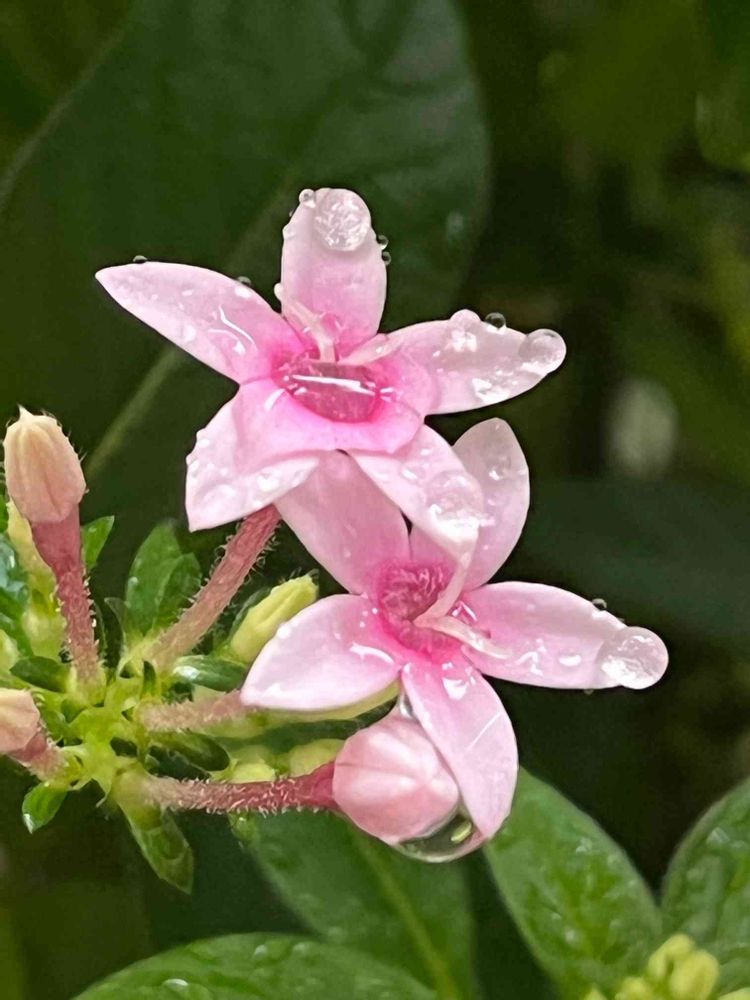 tumuの桃さんのペンタス アップルブロッサム,雨粒,元気いっぱいの投稿画像