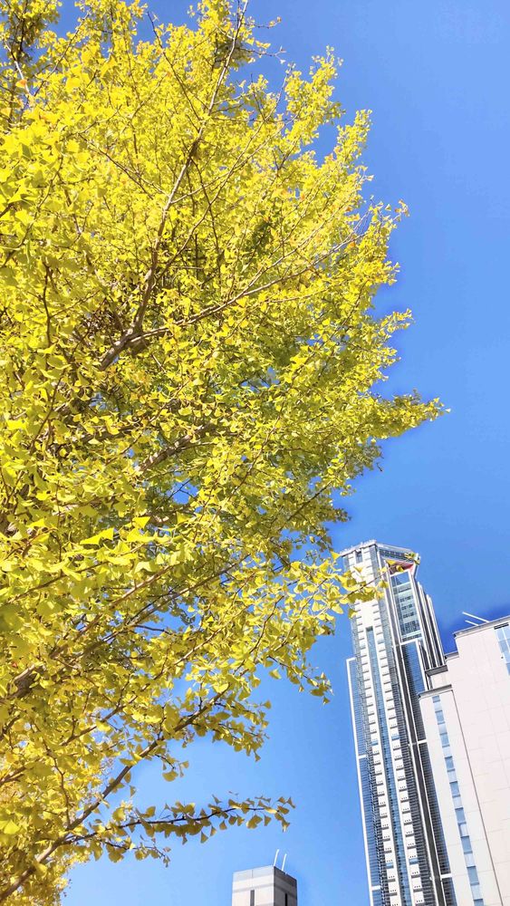 お出かけ先,イチョウ並木,輝くイチョウの木の投稿画像