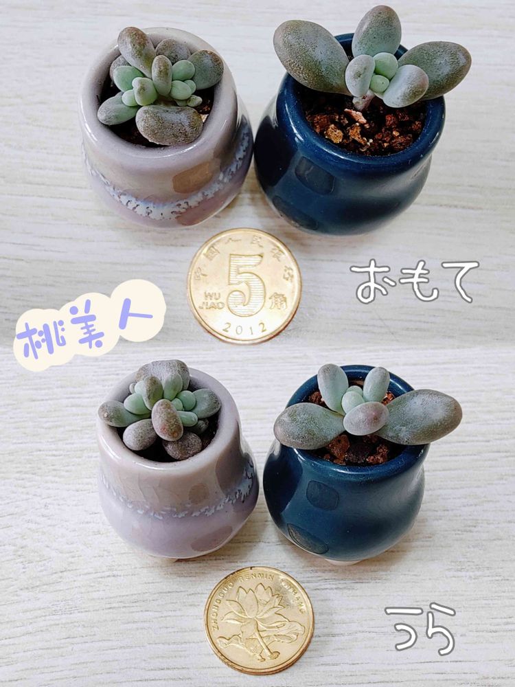 2つとも配送時に既にポロポロ落ちていた小さな小さな欠片で、特に➡️は鉢に植えてもヒョロヒョロペタンコのままでしたが、ようやくムッチリしてくれました❣️