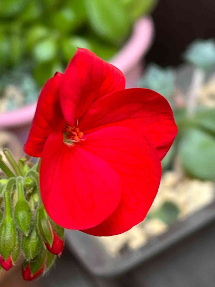 赤いゼラニウムも、可愛らしく咲いてくれました。友達からの、頂きもの😊👍