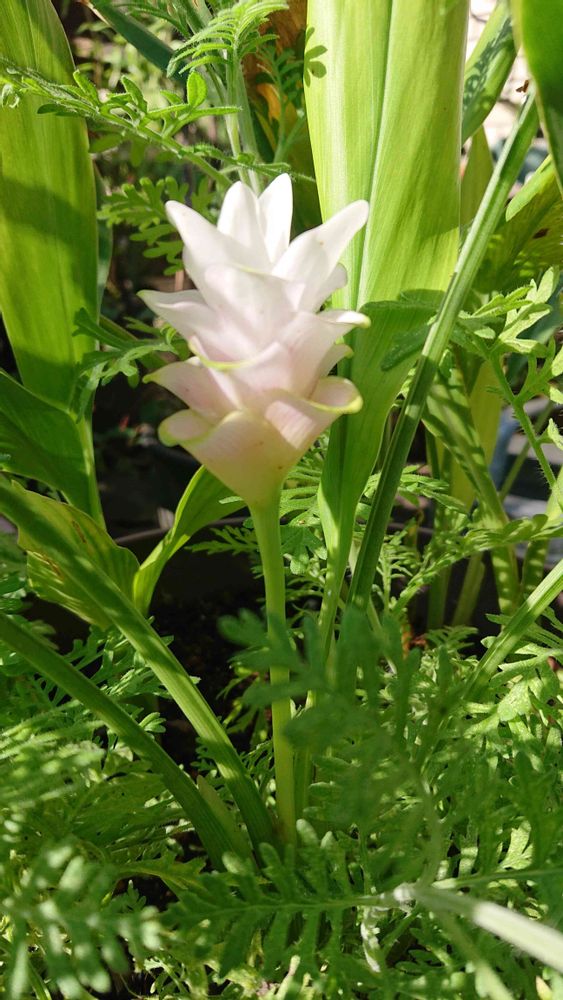 冬越しして5月に植えつけたクルクマが、今頃咲いてくれました😉