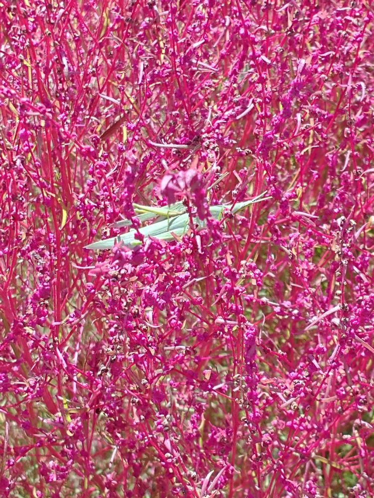 🌺コキア(ヒユ科)の赤い海の中に〜浮かぶ笹舟 NO!オンブバッタ🦗🦗だよ〜!