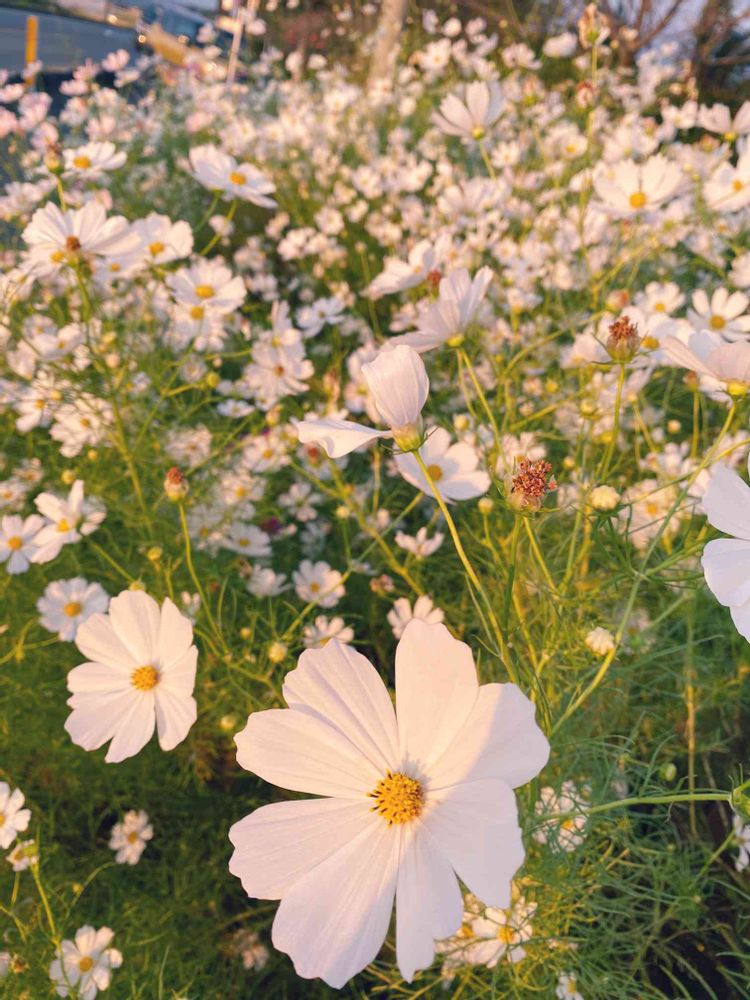 夕暮れに真っ白いコスモスがとても綺麗だったので思わず撮ってしまいました😊